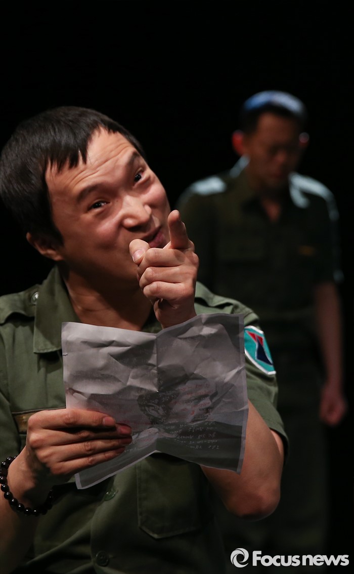 (서울=포커스뉴스) 9일 오후 서울 종로구 선돌극장에서 열린 연극 '백중사 이야기' 프레스콜 행사에 극중 김일병 역할을 맡은 배우 한인수가 주요 장면을 시연하고 있다.