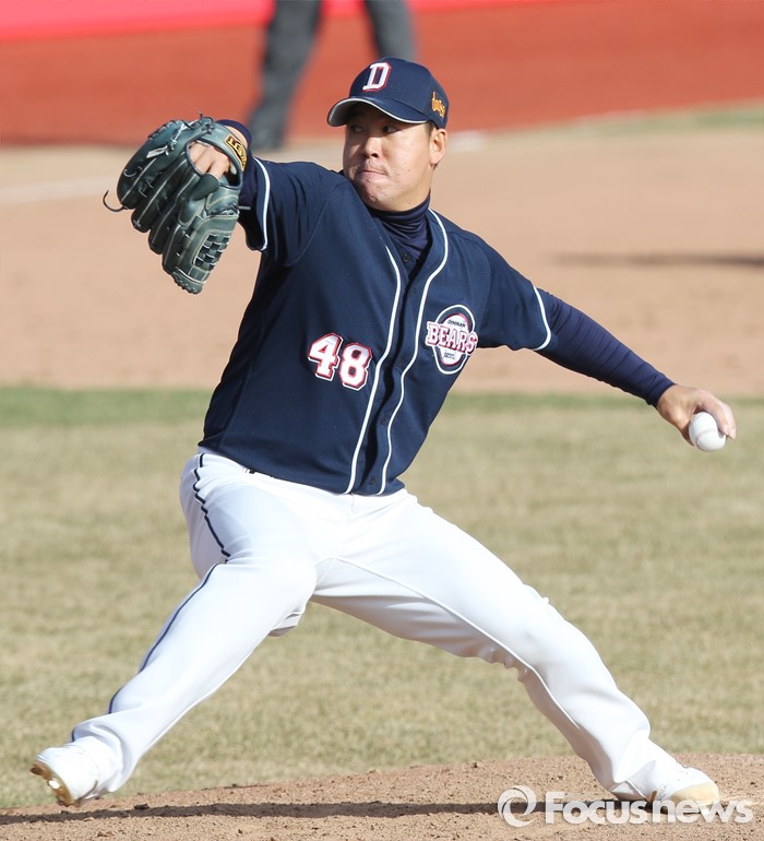 (수원=포커스뉴스) 9일 수원 kt위즈파크에서 열린 2016 KBO리그 시범경기 두산-kt 경기에서 9회말 두산 마무리 이현승이 등판해 투구하고 있다.