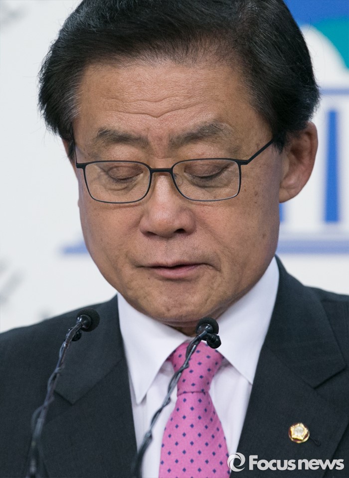 (서울=포커스뉴스) 새누리당 현역 의원 중 공천배제 통보를 받은 김태환 의원이 9일 오후 서울 여의도 국회 정론관에서 탈당 및 20대 총선 무소속 출마 기자회견을 하고 있다.