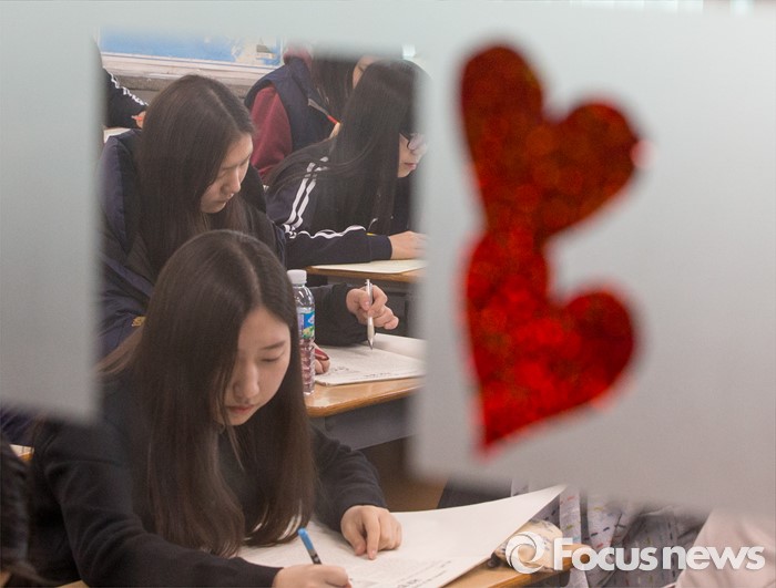 (서울=포커스뉴스) 10일 오전 서울 서대문구 명지고등학교에서 1학년 학생들이 2016학년도 첫 전국연합학력평가를 치고 있다.
