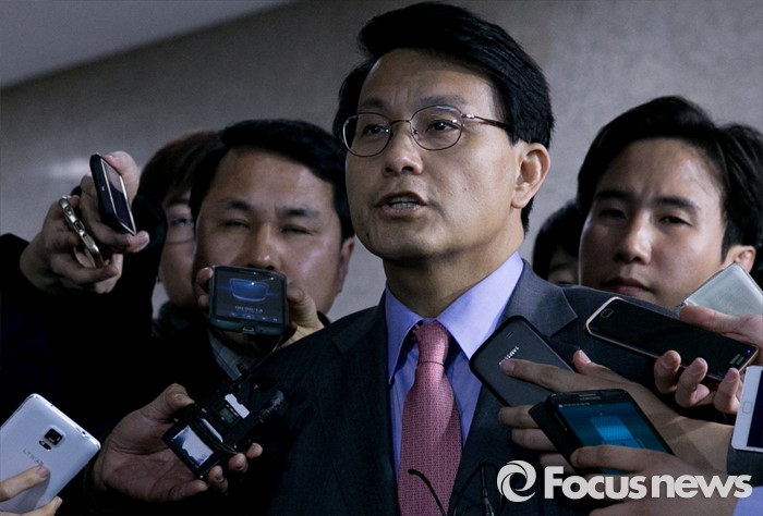 (서울=포커스뉴스) '김무성 욕설 녹취록'으로 논란을 일으킨 윤상현 새누리당 의원이 10일 오전 서울 여의도 국회에서 비공개 최고위원회의에 참석한 뒤 취재진 질문에 답하고 있다. 전날 김무성 대표와의 면담이 불발된 윤 의원은 이날 오전 김 대표의 자택을 방문해 사과했다고 전했다.