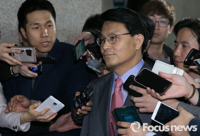 (서울=포커스뉴스) '김무성 욕설 녹취록'으로 논란을 일으킨 윤상현 새누리당 의원이 10일 오전 서울 여의도 국회에서 비공개 최고위원회의에 참석한 뒤 취재진 질문에 답하고 있다. 전날 김무성 대표와의 면담이 불발된 윤 의원은 이날 오전 김 대표의 자택을 방문해 사과했다고 전했다.