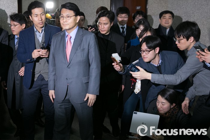 | △ 취재진 앞에 선 윤상현 의원 |