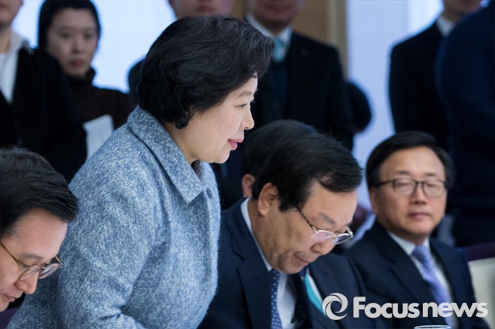 (서울=포커스뉴스) 10일 오전 서울 중구 대한상공회의소에서 열린 국세청장 초청 전국상의 회장단 정책간담회에 참석한 현정은 현대그룹 회장이 인사하고 있다.