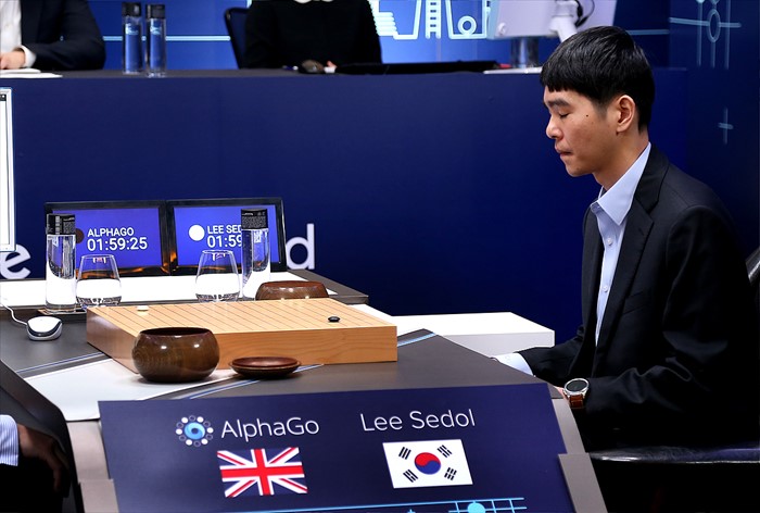 (서울=포커스뉴스) 바둑기사 이세돌 9단이 10일 오후 서울 종로구 포시즌스호텔에서 구글 딥마인드 챌린지 매치, 인공지능 바둑프로그램 알파고와의 두번째 대국을 하고 있다. <사진제공=구글>
