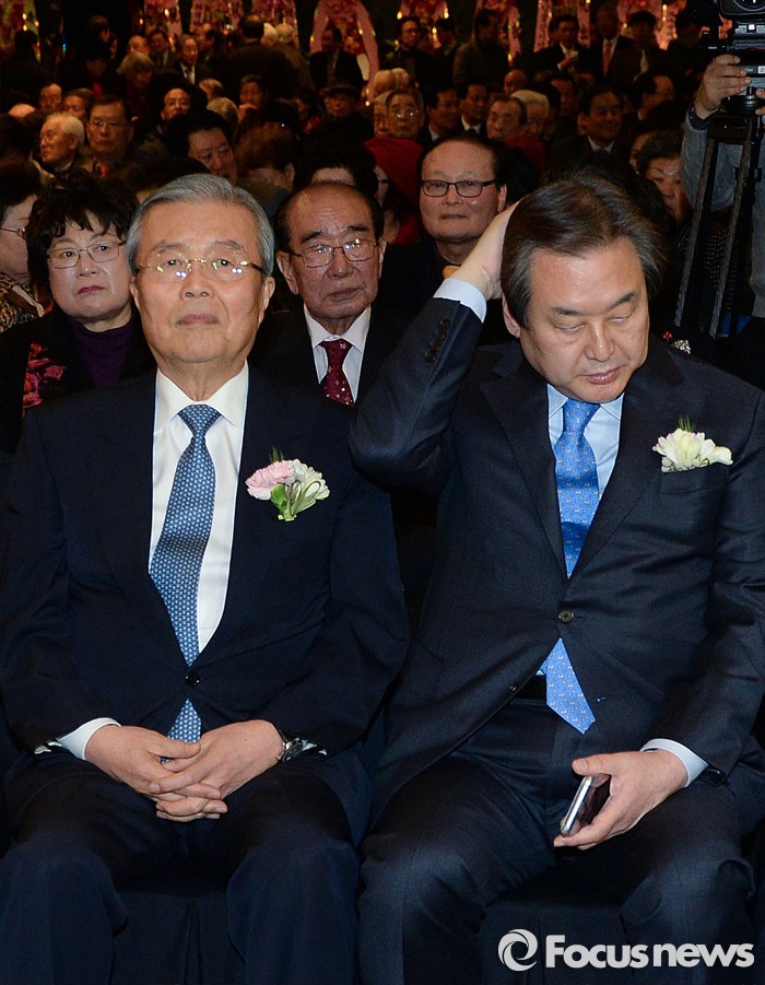 (서울=포커스뉴스) 김무성(오른쪽) 새누리당 대표와 김종인 더불어민주당 비대위 대표가 10일 오후 서울 종로구 세종문화회관 세종홀에서 열린 김종필 전 국무총리의 정치인생을 담은 '김종필 증언록' 출판기념회에 참석해 자리하고 있다.