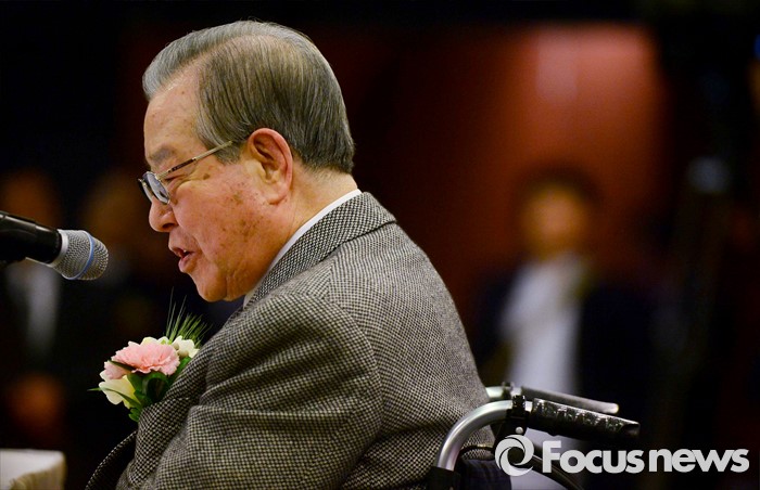 (서울=포커스뉴스) 김종필 전 국무총리가 10일 오후 서울 종로구 세종문화회관 세종홀에서 열린 자신의 '김종필 증언록' 출판기념회에 참석해 인사말을 하고 있다.