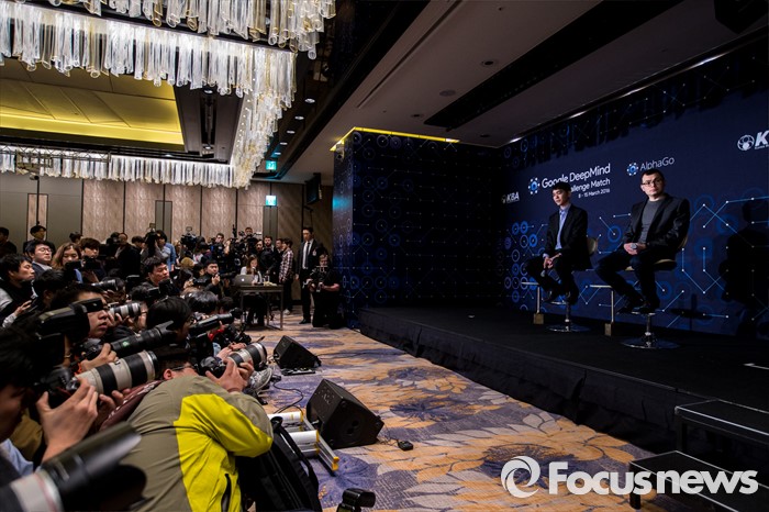 (서울=포커스뉴스) 프로바둑기사 이세돌 9단이 10일 오후 서울 종로구 포시즌스 호텔에서 열린 '구글딥마인드 챌린지 매치' 인공지능 '알파고'와의 제2국에 불계패를 당한 뒤 기자회견 하고 있다.