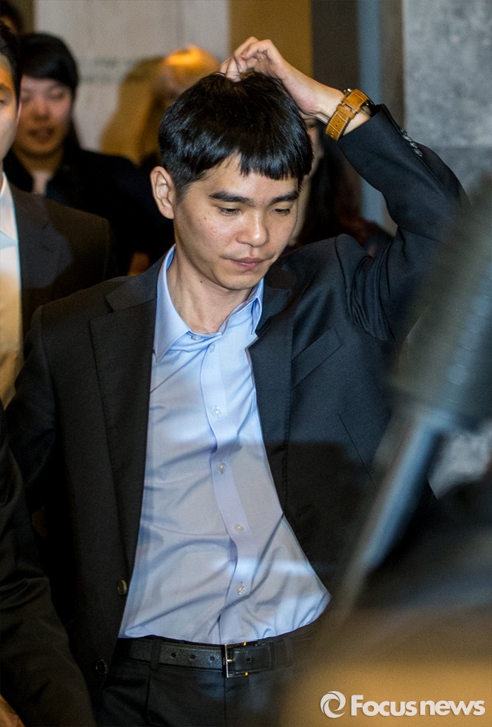 (서울=포커스뉴스) 프로바둑기사 이세돌 9단이 10일 오후 서울 종로구 포시즌스 호텔에서 열린 '구글딥마인드 챌린지 매치' 인공지능 '알파고'와의 제2국에 불계패를 당한 뒤 기자회견장으로 이동하고 있다.