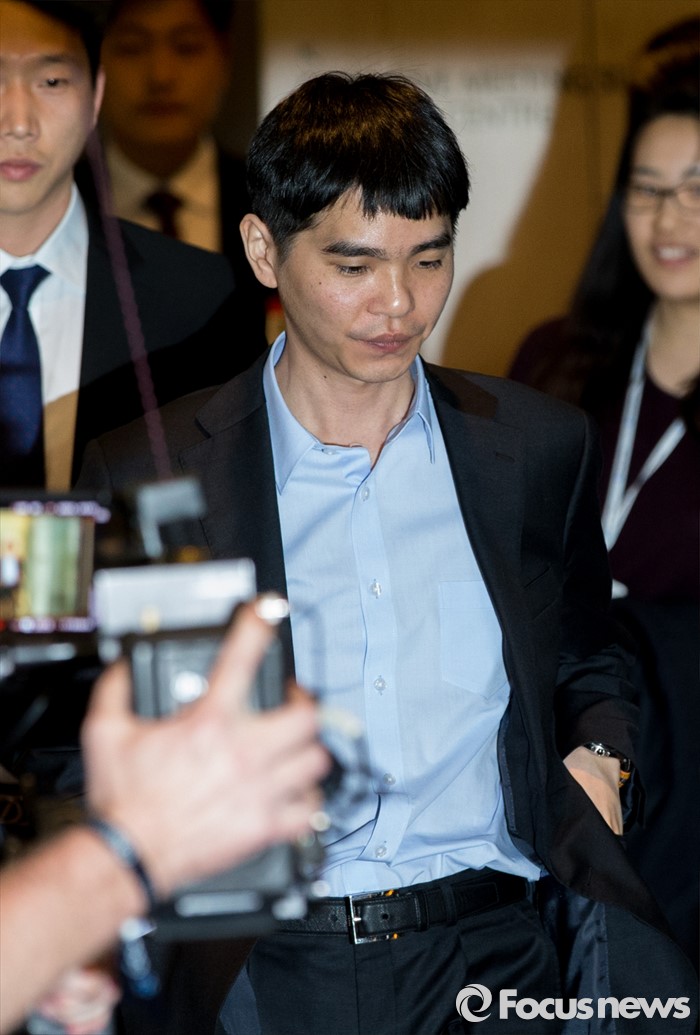 (서울=포커스뉴스) 프로바둑기사 이세돌 9단이 10일 오후 서울 종로구 포시즌스 호텔에서 열린 '구글딥마인드 챌린지 매치' 인공지능 '알파고'와의 제2국에 불계패를 당한 뒤 기자회견장으로 이동하고 있다.