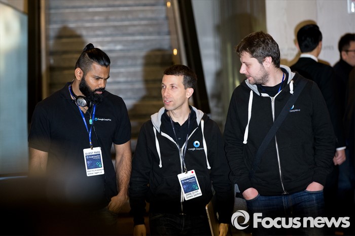 (서울=포커스뉴스) 10일 오후 서울 종로구 포시즌스 호텔에서 열린 '구글딥마인드 챌린지 매치' 이세돌 9단과 인공지능 알파고 바둑 제2국에서 딥마인드 팀원들이 경기를 마친 뒤 기자회견장으로 들어서고 있다.