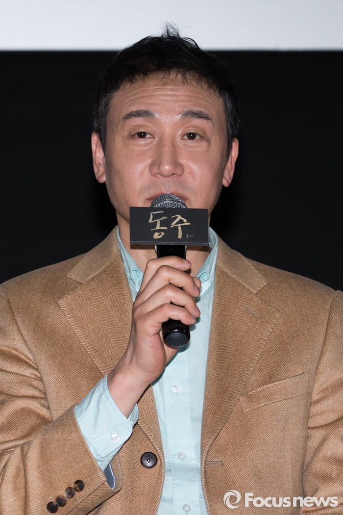 (서울=포커스뉴스) 10일 오후 서울 강남구 코엑스 메가박스에서 열린 영화 '동주'의 관객과의 대화에 참석한 배우 김인우가 관객 질문에 답변하고 있다.