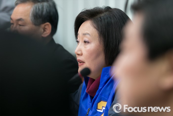 (서울=포커스뉴스) 박영선 더불어민주당 비대위원이 11일 오전 서울 여의도 국회에서 열린 비대위-선대위 연석회의에 참석해 발언하고 있다.