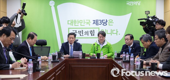 (서울=포커스뉴스) 주승용 국민의당 원내대표가 11일 오전 서울 여의도 국회 의원회관에서 열린 최고위원회의에서 모두발언을 하고 있다. 오른쪽 세번째부터 장병완 정책위의장, 안철수 상임공동대표, 주승용 원내대표.