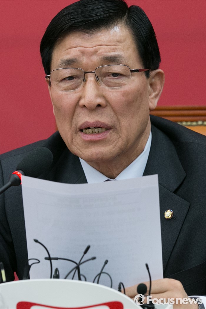 (서울=포커스뉴스) 황진하 새누리당 사무총장이 11일 오전 서울 여의도 국회에서 열린 원내대책회의에 참석해 발언하고 있다. 앞서, 지난 10일 황 사무총장은 이한구 공관위원장이 독선적으로 공관위를 운영한다며 회의 불참을 선언했다.
