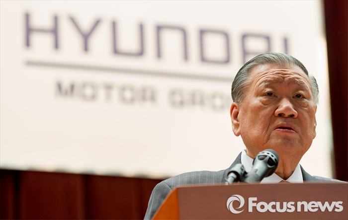 법규에 따라 주총 1주 전에 공시되던 감사보고서를 올해부터는 2주 전에 조기 공시하고, 외부감사인 선임에 대한 결정 사항도 이날 주총회장에서 직접 보고하는 등 주주들에게 보다 신속하고 투명한 정보제공을 하기로 했다.(서울=포커스뉴스) 4일 오전 서울 서초구 현대자동차 본사 대강당에서 열린 2016년도 시무식에 참석한 정몽구 현대차그룹 회장이 신년사를 하고 있다. 2016.01.04 양지웅 기자