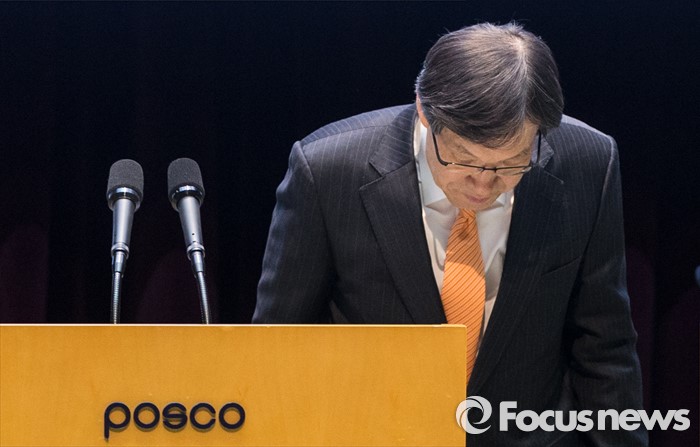 (서울=포커스뉴스) 11일 오전 서울 강남구 포스코센터에서 열린 정기주주총회에 참석한 권오준 포스코 회장이 주주들에게 인사하고 있다.