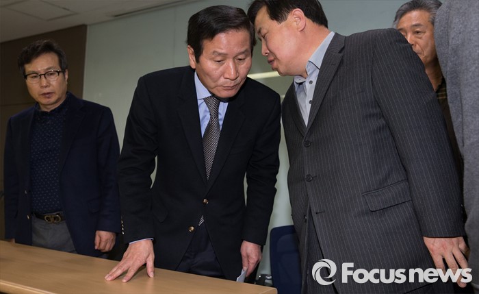 (서울=포커스뉴스) 11일 오전 서울 영등포구 중소기업중앙회 중회의실에서 정기섭 회장을 비롯한 임원들이 북한당국의 개성공단 자산 청산통보에 대한 입주기업의 입장발표를 마치고 대화를 나누고 있다.