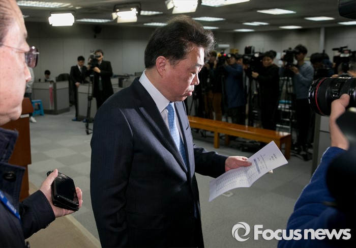 (서울=포커스뉴스) 김성수 더불어민주당 대변인이 11일 오전 서울 여의도 국회 정론관에서 20대 총선 경선 및 단수지역과 3차 공천배제(컷오프) 관련 브리핑을 마친 뒤 퇴장하고 있다.