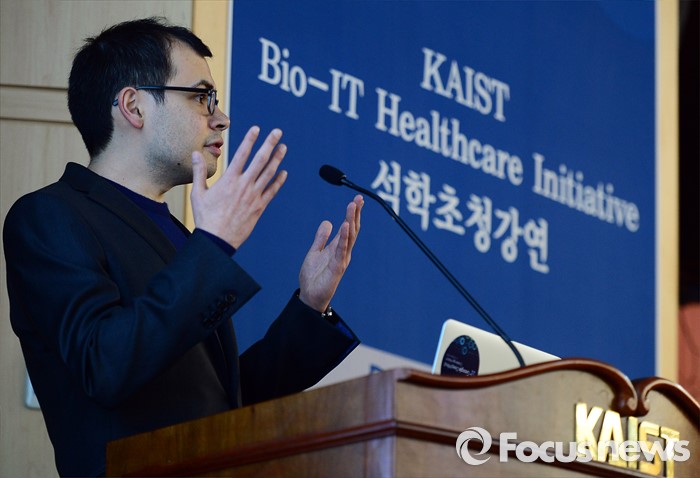(대전=포커스뉴스) 이세돌 9단과 겨루는 인공지능 컴퓨터 알파고를 개발한 구글 딥마인드 최고경영자 데미스 하사비스가 11일 오후 대전 유성구 한국과학기술원에서 '인공지능과 미래' 라는 주제로 강연을 하고 있다.