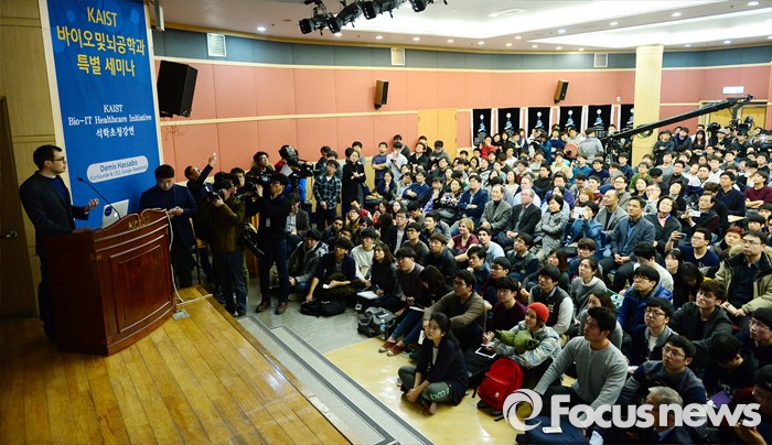 (대전=포커스뉴스) 이세돌 9단과 겨루는 인공지능 컴퓨터 알파고를 개발한 구글 딥마인드 최고경영자 데미스 하사비스가 11일 오후 대전 유성구 한국과학기술원에서 '인공지능과 미래' 라는 주제로 강연을 하고 있다.