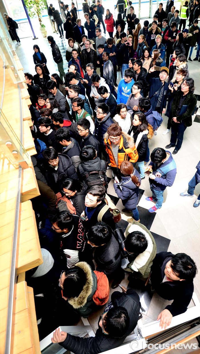 (대전=포커스뉴스) 이세돌 9단과 겨루는 인공지능 컴퓨터 알파고를 개발한 구글 딥마인드 최고경영자 데미스 하사비스의 강연이 열린 11일 오후 대전 유성구 한국과학기술원에 입장하지 못한 학생들이 행사장 밖에서 동영상을 촬영하며 강의를 듣고 있다.