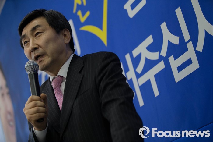 (공주=포커스뉴스) 이종걸 더민주 원내대표가 11일 오후 충남 공주시에서 열린 더민주 박수현 의원의 선거사무소 개소식에 참석, 박 의원의 지지를 호소하며 발언하고 있다.