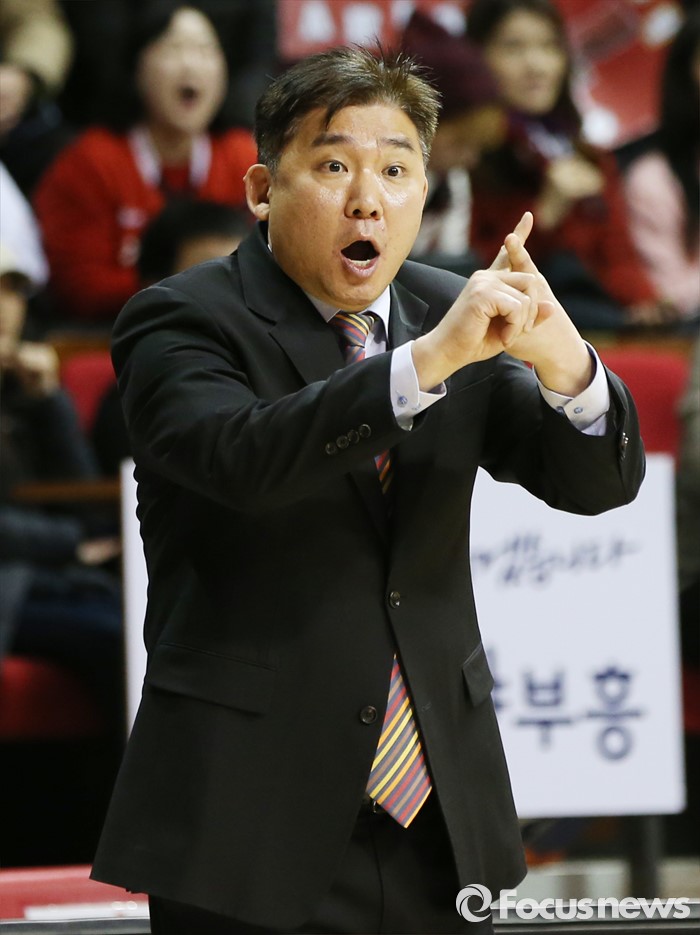 (안양=포커스뉴스) 11일 안양실내체육관에서 열린 2015-2016 프로농구 KGC-KCC 4강플레이오프 3차전에서 KGC 김승기 감독이 선수들에게 수비에 대한 작전을 주문하고 있다.