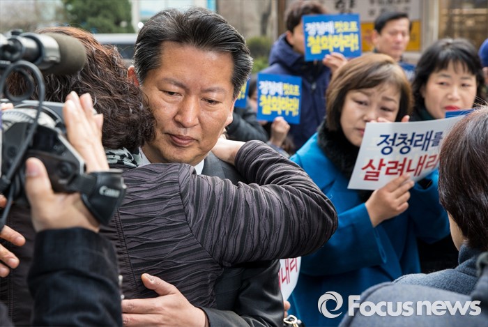 △ 지지자들과 포옹하는 정청래