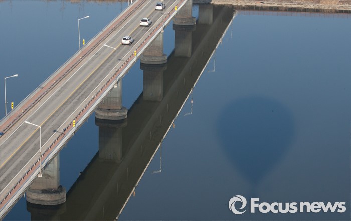 (논산=포커스뉴스) 12일 오전 충남 논산 강경읍 수변공원 일대에서 열린 2015-2016시즌 코리아열기구그랑프리 5차전 ‘오프로드컵’에서 대회에 출전한 선수들이 공중 레이스를 펼치고 있다.