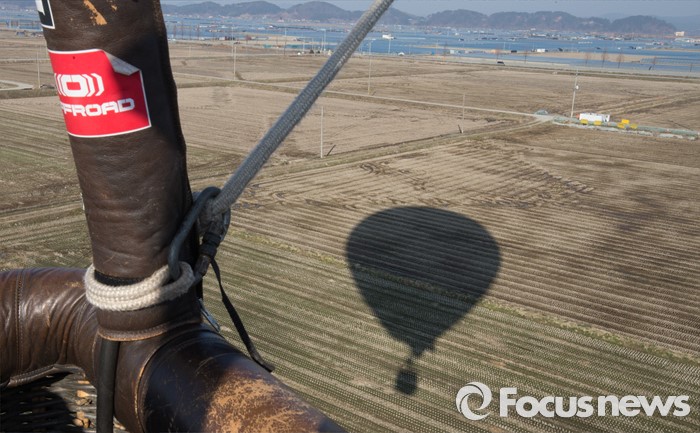 (논산=포커스뉴스) 12일 오전 충남 논산 강경읍 수변공원 일대에서 열린 2015-2016시즌 코리아열기구그랑프리 5차전 ‘오프로드컵’에서 대회에 출전한 선수들이 공중 레이스를 펼치고 있다.