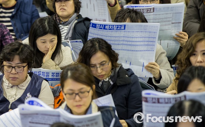 (서울=포커스뉴스) 12일 오후 서울 성동구 한양대학교 올림픽체육관에서 열린 '2017학년도 대학입시설명회'에 참석한 학부형, 수험생 및 관계자들이 주요 대학 배치참고표를 보고 있다.