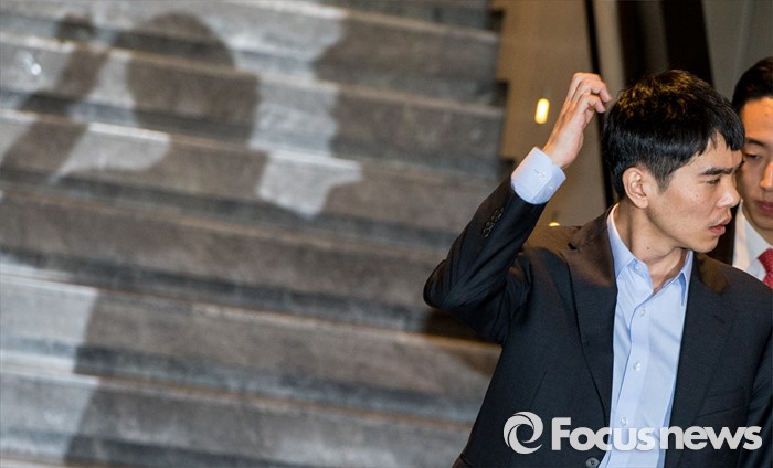 (서울=포커스뉴스) 12일 오후 서울 종로구 포시즌스호텔에서 열린 구글 딥마인드 챌린지 매치 제3국 기자회견에 참석한 이세돌) 9단이 머리를 긁고 있다.