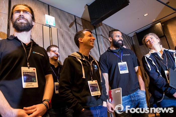 (서울=포커스뉴스) 12일 오후 서울 종로구 포시즌스호텔에서 열린 구글 딥마인드 챌린지 매치 제3국 기자회견에 참석한 구글 딥마인드의 알파고 팀원들이 밝게 웃고 있다.