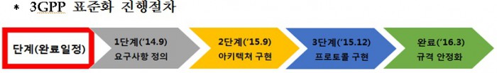 장석영 미래부 인터넷융합정책관은 “3GPP 표준이 완료돼 재난망 사업 추진이 탄력을 받을 것으로 예상된다”고 밝혔다.3GPP의 재난망 표준화 진행절차.<그림제공=미래부>