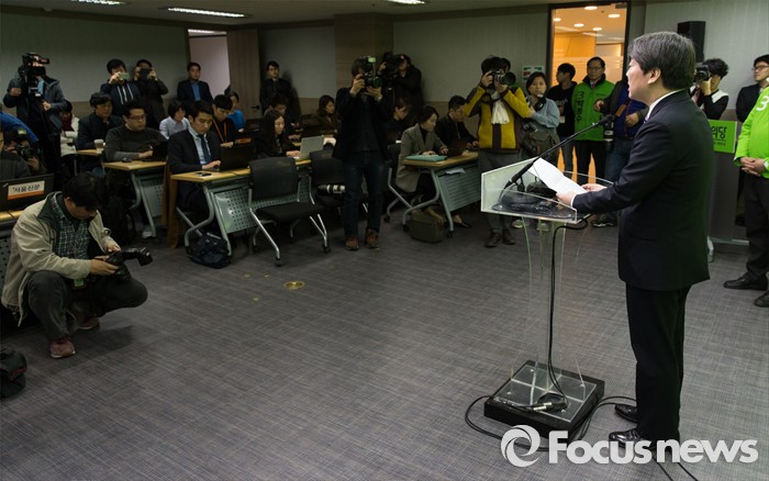 (서울=포커스뉴스) 안철수 국민의당 공동대표가 13일 오후 서울 마포구 당사에서 기자회견을 하고 있다. 이날 안 대표는 야권연대 불가입장을 재천명 했다.