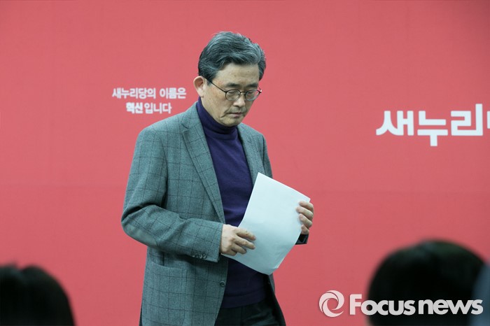 (서울=포커스뉴스) 이한구 새누리당 공천관리위원장이 13일 오후 서울 여의도 당사 기자실에서 20개 지역구 경선 결과 발표를 마치고 단상을 내려오고 있다.