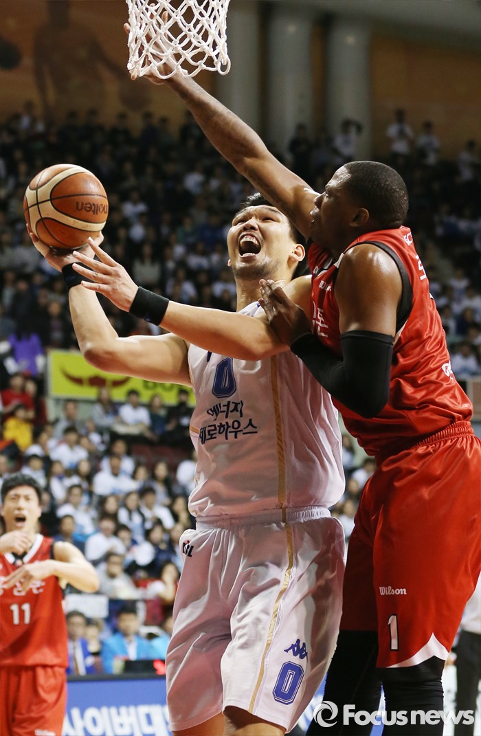 KGC는 이정현이 외곽 분전으로 25득점을 올렸지만 승패에 영향을 주지 못했다. 찰스 로드(11득점 4리바운드)와 마리오 리틀(15득점 1리바운드)도 제 몫을 해주지 못했다. 김민욱(16득점 4리바운드)가 더 돋보였을 정도다.(안양=포커스뉴스) 13일 안양실내체육관에서 열린 2015-2016 프로농구 KGC-KCC 4강플레이오프 4차전에서 KCC 하승진이 KGC 찰스 로드의 마크를 제치며 골밑슛을 시도하고 있다. 2016.03.13 우정식 기자