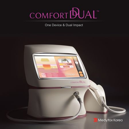 메디톡스코리아에 따르면 컴포트 듀얼은 두 개의 전극을 사용하는 바이폴라(Bipolar) 방식의 4MHz 고주파를 이용해 피부 진피 하부층까지 강력한 열에너지를 전달하는 시술 장비이다.