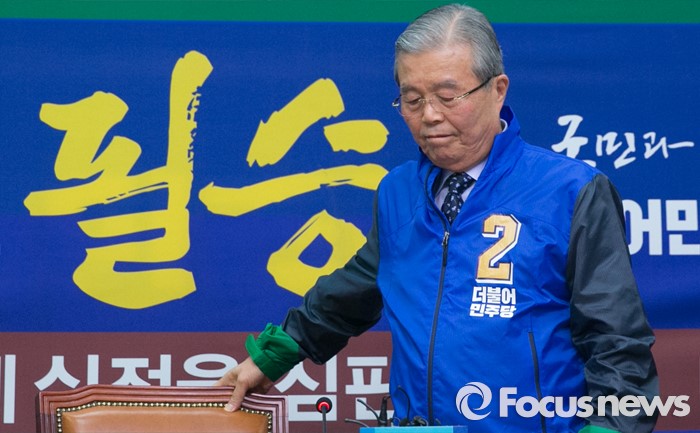 (서울=포커스뉴스) 20대 총선 D-30일인 14일 오전 서울 여의도 국회에서 김종인 더불어민주당 비대위 대표가 총선 필승 퍼포먼스를 마친 뒤 비상대책위원회의를 위해 자리에 앉고 있다.