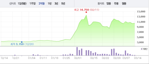 이틀 연속 하락세를 기록했던 오리엔트 바이오도 이날 소폭 상승세다. 오리엔트 바이오는 0.34%(5원) 밀린 1490원에 거래되고 있다. 오리엔트 바이오는 뇌염백신과 인플루엔자 백신의 생산원료를 공급 중이다.