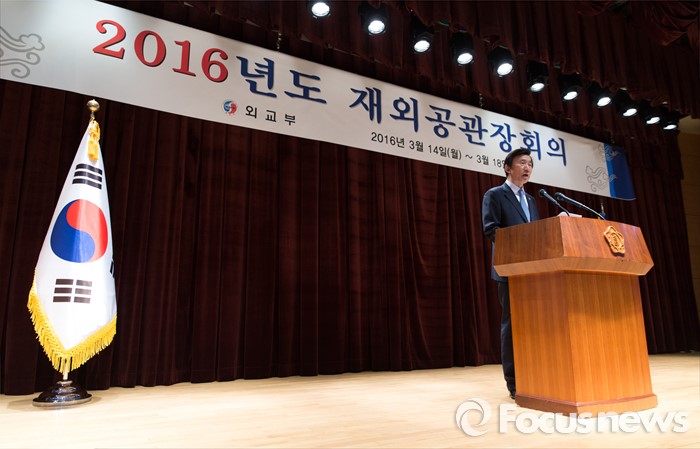 (서울=포커스뉴스) 14일 오전 서울 종로구 외교부에서 2016년도 재외공관장회의에 참석한 윤병세 외교부 장관이 인사말을 하고 있다.