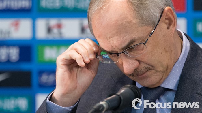 (서울=포커스뉴스) 14일 오전 서울 종로구 대한축구협회에서 울리 슈틸리케 한국축구대표팀 감독이 레바논과의 2018년 러시아월드컵 아시아지역 2차예선 7차전(24일 오후 8시·안산 와 스타디움)과 태국 원정(27일)에 출전할 대표팀 명단을 발표전 안경을 벗고 있다.