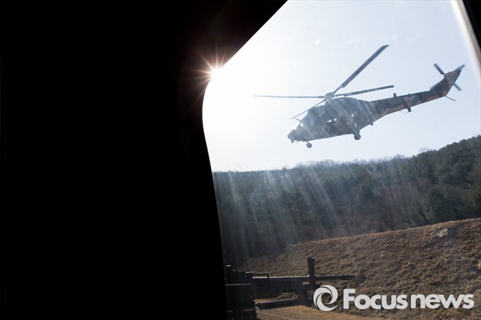(영천=포커스뉴스) 10일 오후 제2작전사령부 예하부대에서 국산 헬기 수리온(KUH-1)이 육군항공·특공부대 전개훈련에 참가해 이륙하고 있다.