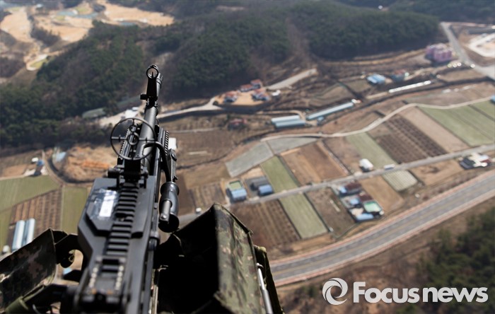 (대구=포커스뉴스) 10일 오후 제2작전사령부 예하부대에서 육군항공·특공부대 전개훈련에 참가한 국산 헬기 수리온(KUH-1)이 경북 대구와 영천 상공 일대를 전술비행하고 있다.