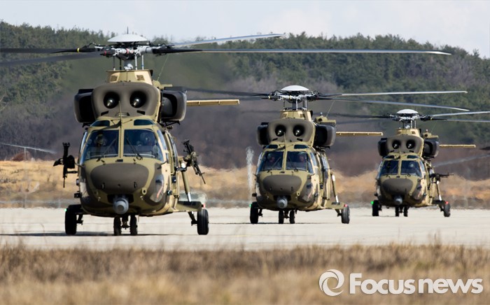 (영천=포커스뉴스) 10일 오후 제2작전사령부 예하부대에서 국산 헬기 수리온(KUH-1)이 육군항공·특공부대 전개훈련에 참가해 편대이륙을 준비하고 있다.