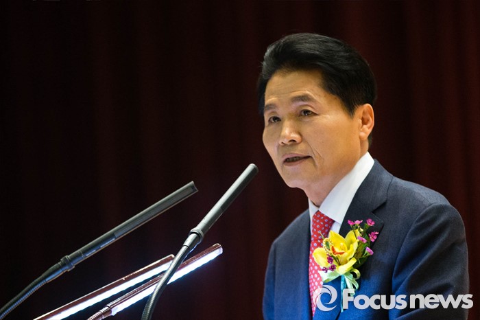 (서울=포커스뉴스) 김병원 농협 신임 회장이 14일 오전 서울 중구 농협 중앙회에서 열린 신임 회장 취임식에 참석, 취임을 기념하며 인사말을 하고 있다.