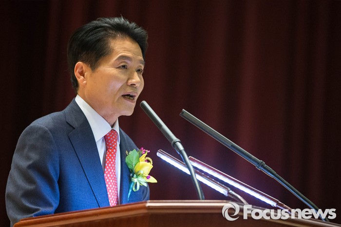 (서울=포커스뉴스) 김병원 농협 신임 회장이 14일 오전 서울 중구 농협 중앙회에서 열린 신임 회장 취임식에 참석, 취임을 기념하며 인사말을 하고 있다.