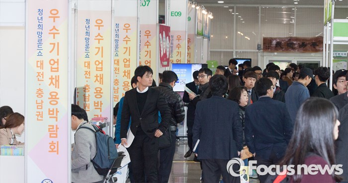 (대전=포커스뉴스) 14일 오전 대전시청에서 열린 청년희망로드쇼 대전·충남권 우수기업 채용박람회에서 많은 구직자들이 방문해 구직정보를 찾고 있다.