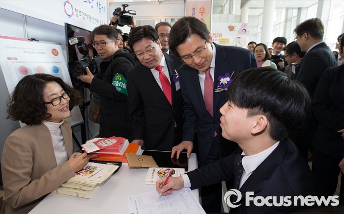 (대전=포커스뉴스) 황교안 국무총리가 14일 오전 대전시청에서 열린 청년희망로드쇼 대전·충남권 우수기업 채용박람회에 참석해 구직자를 격려하고 있다.